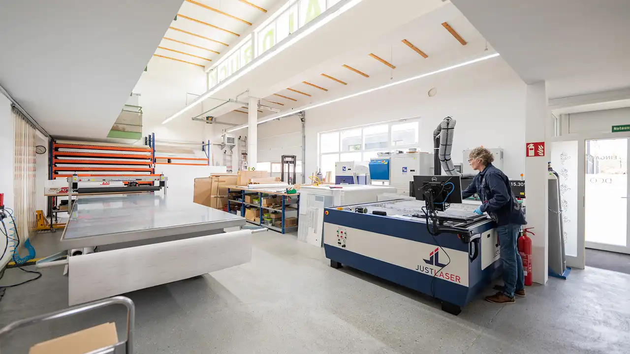 Ein Teil der gezeigten Beispiele entstand im Auftrag unserer Kunden. Auf einzelnen Abbildungen können daher Marken, Logos oder geschützte Kennzeichen erkennbar sein. Diese sind Eigentum der jeweiligen Rechteinhaber und werden ausschließlich im Rahmen der dargestellten Produktions- und Projektbeispiele gezeigt. Dies gilt auch für auf Maschinen oder Geräten sichtbare Herstellerkennzeichen.